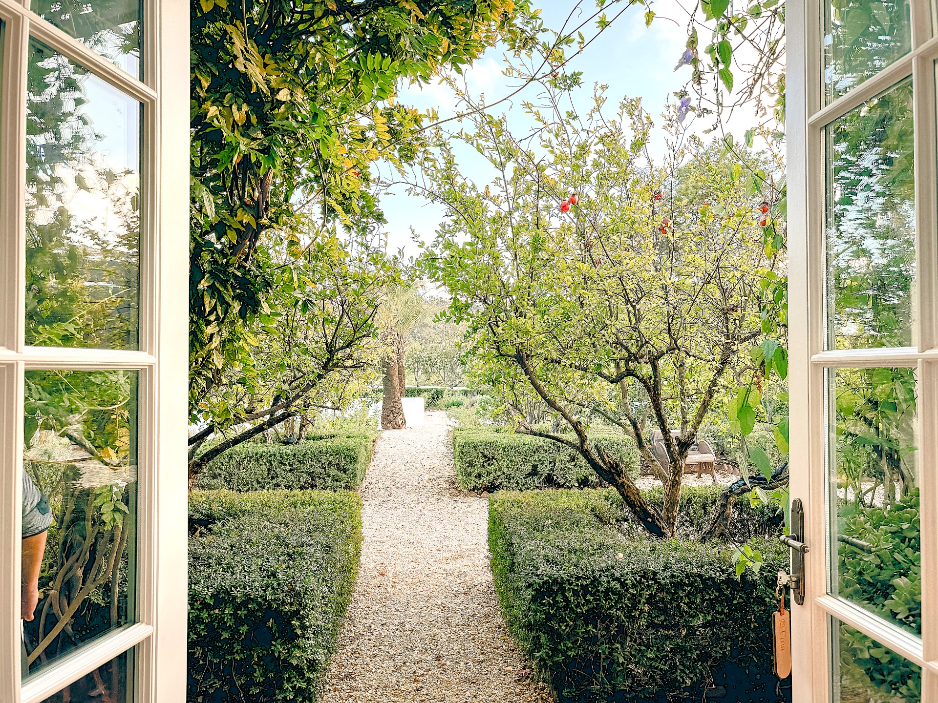 4 hectares de jardins avec vue panoramique, des chambres spectaculaires, une piscine chauffée, un hammam, un sauna, un bain de glace, un parcours de réflexologie, un chemin des chakras et un espace de méditation sculpté dans un arbre — le tout entièrement privatisé pour nous.