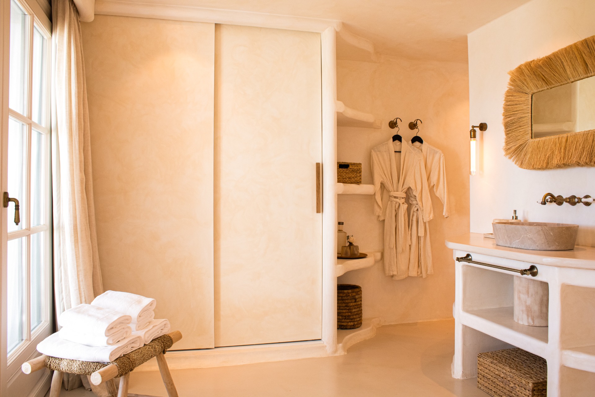 4 hectares of gardens with panoramic views, spectacular rooms, a heated pool, hammam, sauna, ice bath, reflexology path, chakra pathway, and a meditation space carved into a tree — all fully privatized for us.